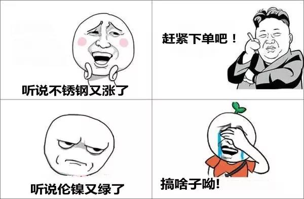| 簡介: 獲益于鎳價暴升影響,昨天上午跌成狗,到了下午就山窮水盡了不銹鋼板大漲了起來。要害還連漲3次,其間甬金/誠德 以200/噸起伏,上調(diào)2次,寶鋼/東特/誠德/青山以200/噸上調(diào)3次;今早無錫商場趁熱乎勁持續(xù)上調(diào),起伏在200-300/噸之間。可是到今天正午時分,跟著鎳價跌綠,304熱軋3-12mm平板理算下調(diào)100/噸!冷軋不銹鋼板成交價隨之可談,成交為主了.... 倫鎳越漲越兇猛,現(xiàn)貨追得底氣不足。很多人慎重達觀,鋼廠底氣不足。甚至跟不上提價的腳步。腳步跟不上就算了,反 | |